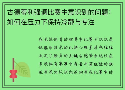 古德蒂利强调比赛中意识到的问题:如何在压力下保持冷静与专注