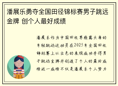 潘展乐,凭借其在田径赛场上突破纪录的表现,勇敢地捧起了金牌,成为了新一代田径赛场上的新星。这一历史性的成就,不仅让他在国内外引起了广泛的关注,更象征着中国田径运动的崭新起点。从潘展乐的成长背景到他如何在激烈的竞争中脱颖而出,本文将从多个维度详细分析这一传奇时刻。从个人成就、训练历程、心态调整到未来前景等四个方面,逐步展开对潘展乐打破纪录、勇夺金牌的全方位阐述。最终,结合他取得的辉煌成绩,我们将展望未来,分析这一胜利对中国田径运动的深远意义。