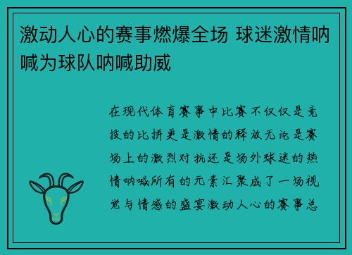 激动人心的赛事燃爆全场 球迷激情呐喊为球队呐喊助威